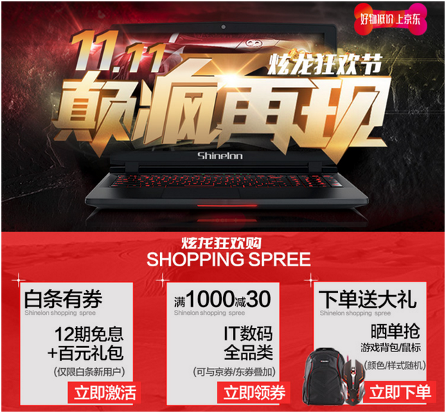 炫龙京东自营店双·11优惠已上架,用白条即享优惠券,不仅12期免息,还可获赠百元礼包,预算不足神马的都不是事儿;IT数码全品类更是全场享满1000减30优惠,多买多减,这福利很划算;炫龙专属晒单送大礼活动同时进行,购机晒单双肩包鼠标等电脑周边配件带回家,这波优惠,划算!
